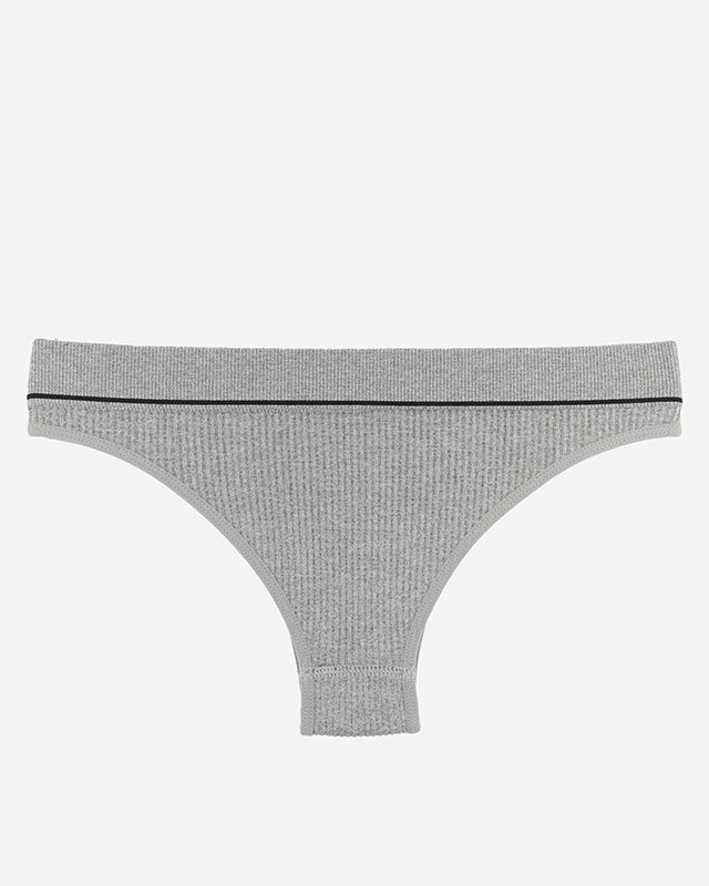Chiloți gri de damă cu nervuri cu inscripții sportive - Lenjerie intimă