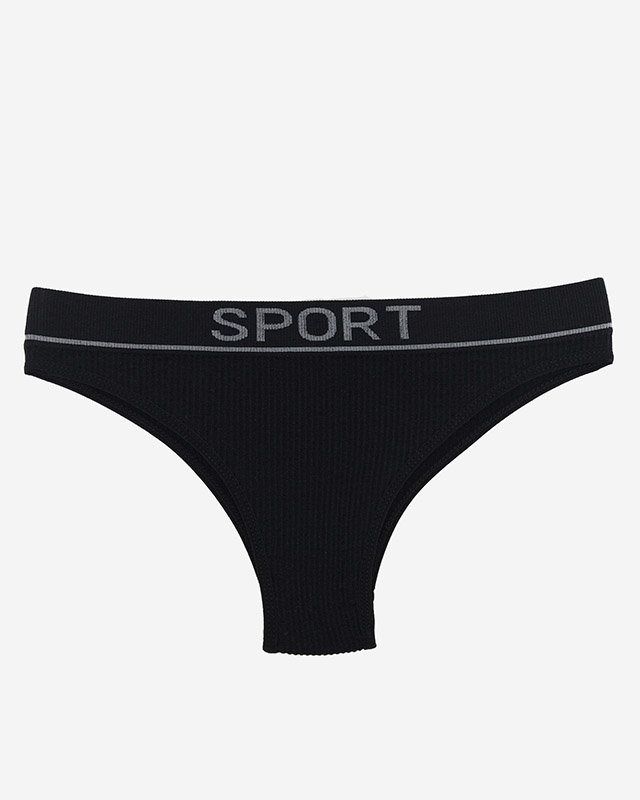 Chiloți negri pentru damă cu nervuri cu inscripții sportive - Lenjerie intimă