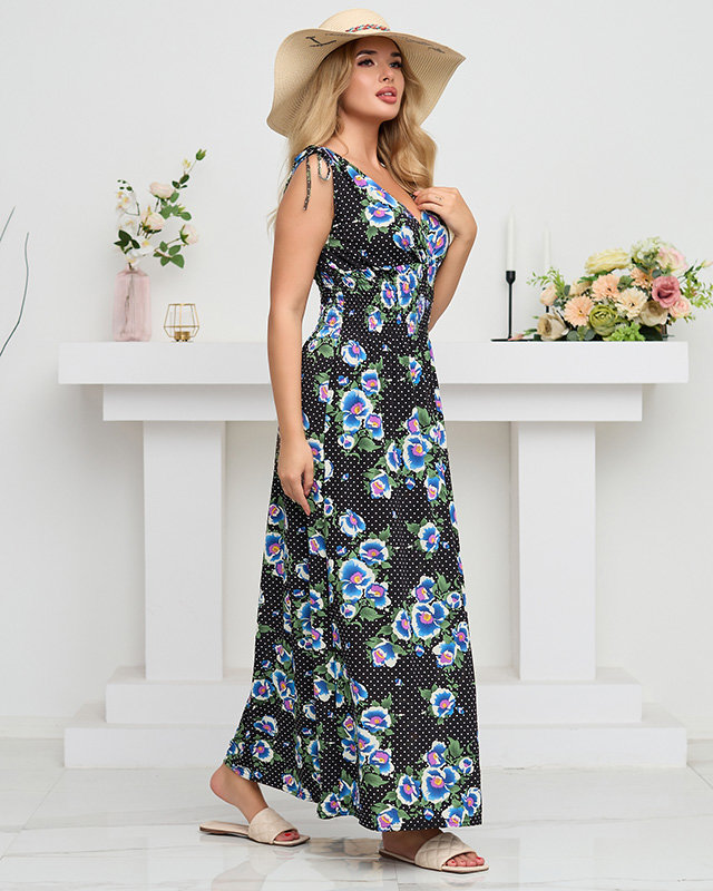 Rochie maxi dama neagra cu flori albastre - Imbracaminte