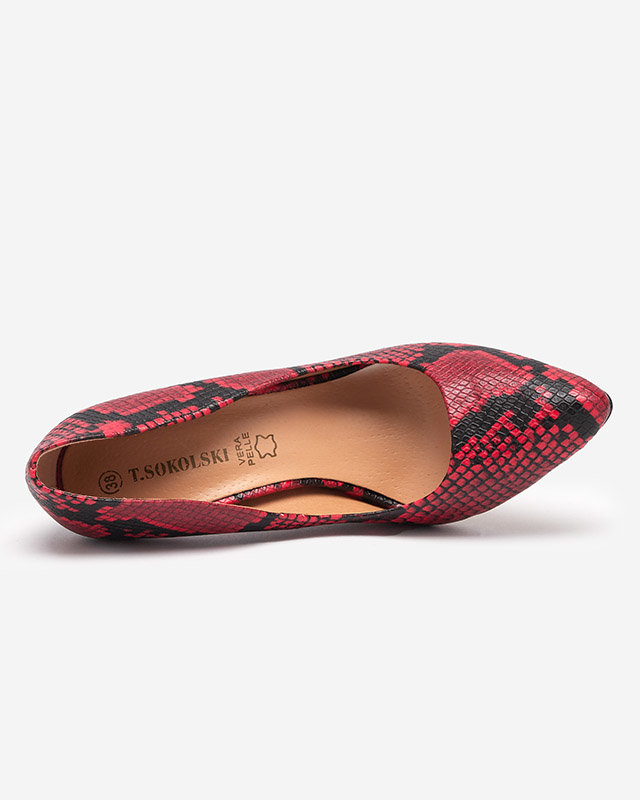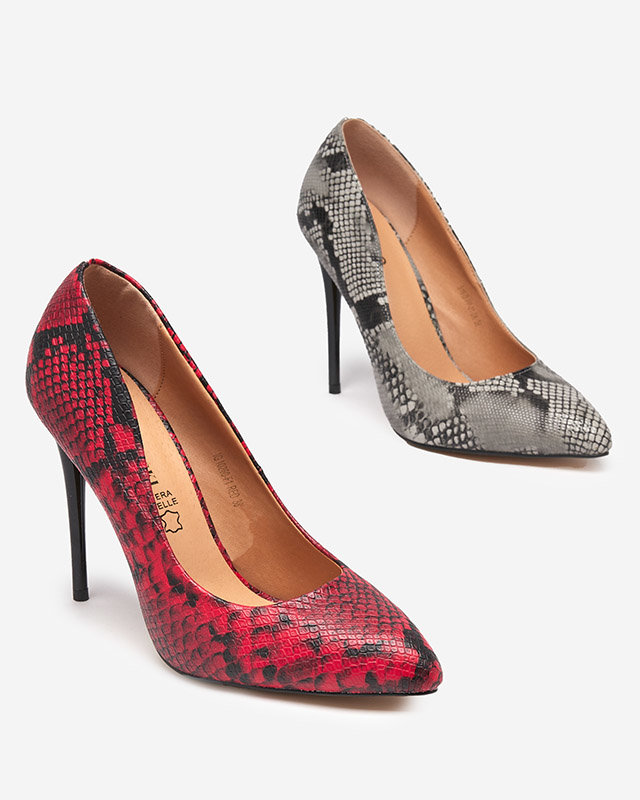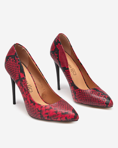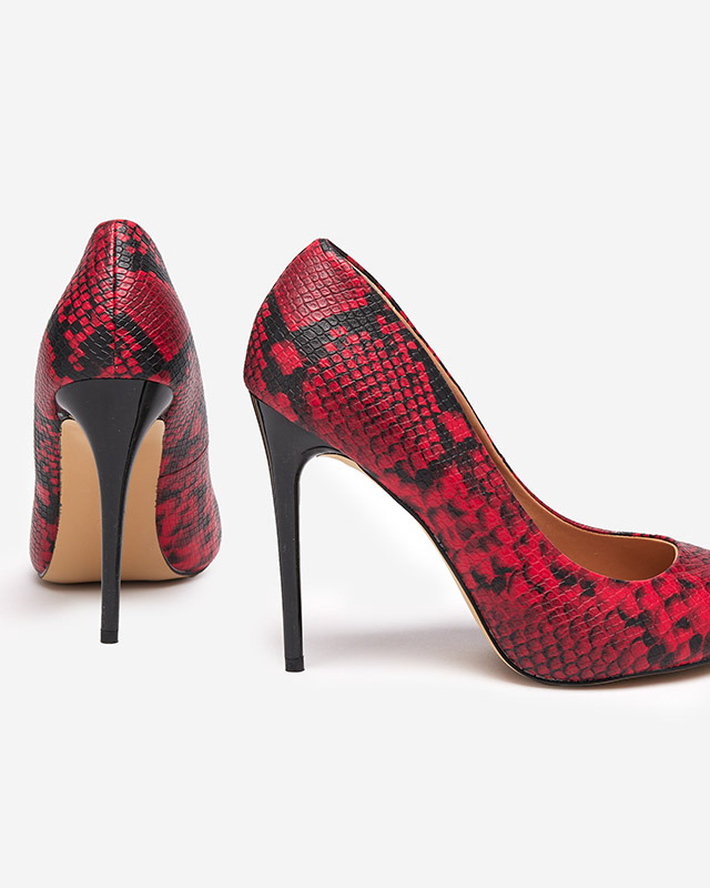 Pompe de damă negre și roșii cu imprimare în piele de șarpe Zelixy - Încălțăminte