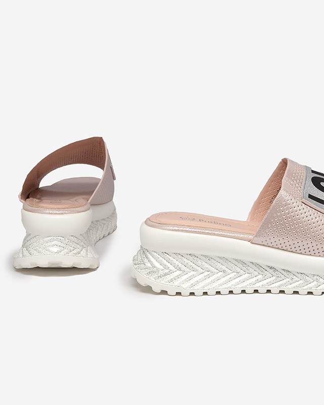 Papuci de dama roz stralucitori cu cuvintele Sosha- Incaltaminte