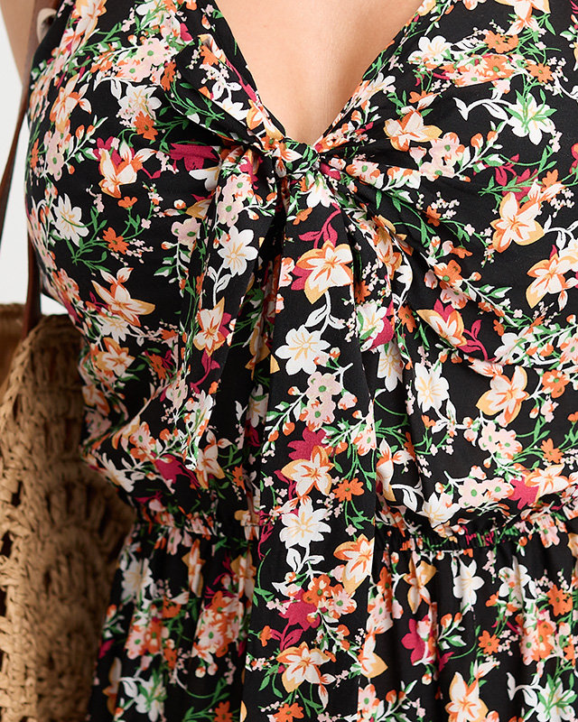 Rochie maxi florala neagra cu bretele - Imbracaminte