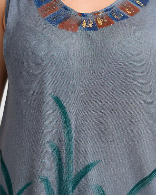 • O pelerină lejeră de tip rochie de damă, confecționată din țesătură de viscoză moale și aerisită. Modelul are decolteul rotund și fundul evazat. NOTĂ: Precizia măsurătorii (+/-) 1 cm.