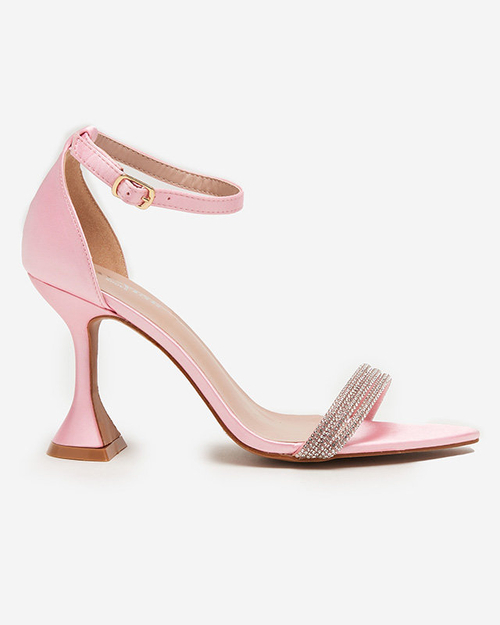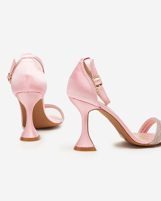 Sandale de dama roz pe toc inalt cu zirconii cubi decorativ Manestri - Incaltaminte