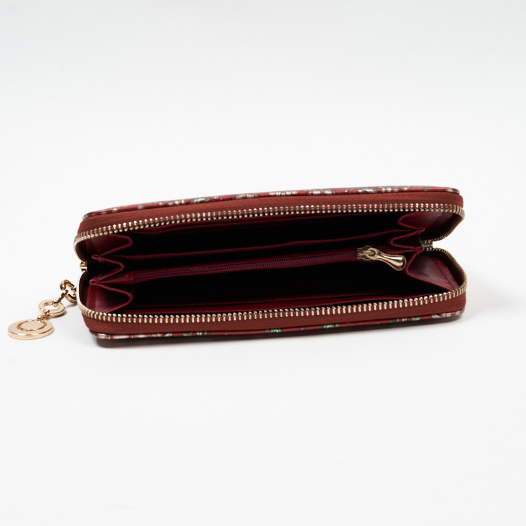 Portofel mare de dama visiniu cu model floral - Accesorii