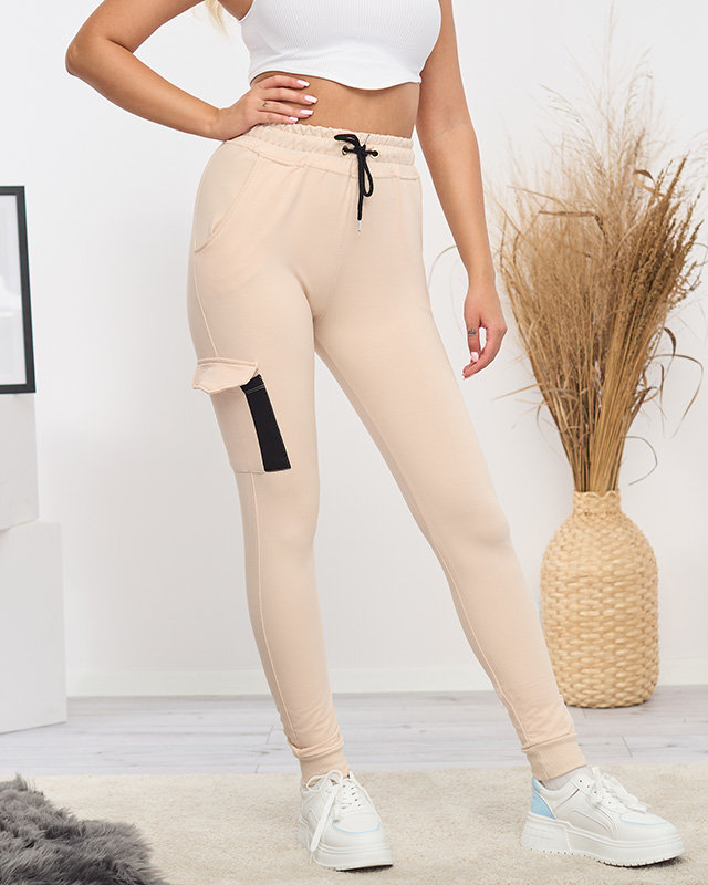 Pantaloni de trening dama bej din bumbac - Imbracaminte