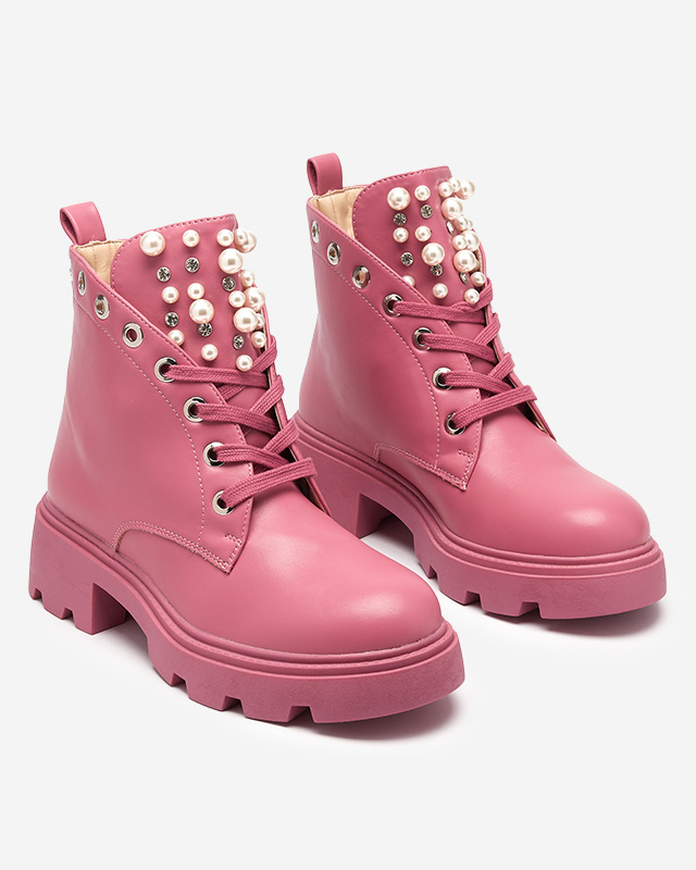 - Cizme cu toc plat din piele ecologica, au o izolatie delicata. Partea superioară cu șireturi, decorată cu perle. PANTOF DE DAMA ROZ CIZTE ECO PIELE ORILCO