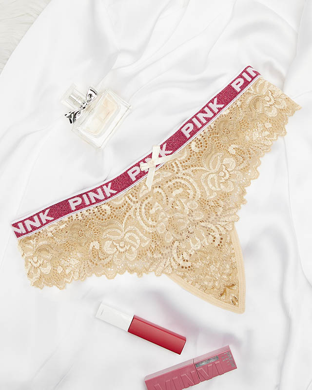 Chiloți tanga damă bej din dantelă - Lenjerie intimă