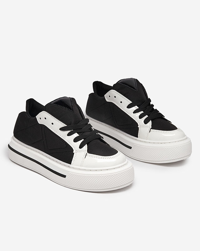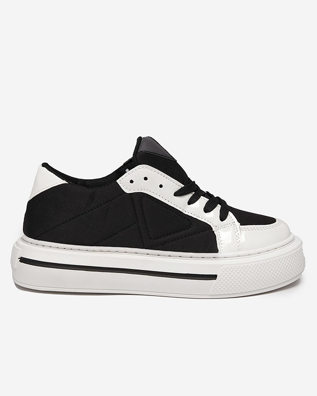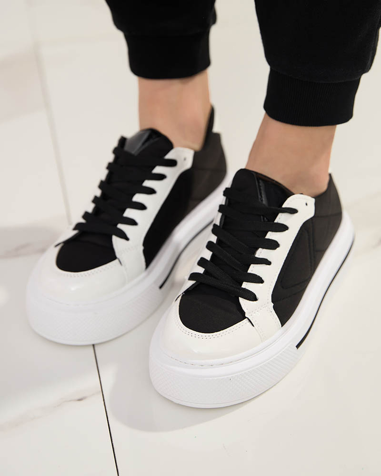 - Pantofi sport de damă cu șireturi, cu căptușeală cu șireturi. Modelul este realizat dintr-o combinație de material textil și piele ecologică lăcuită. Talpă mai groasă din cauciuc, inserție din material textil. Notă: produsul are urme de lipici pe material