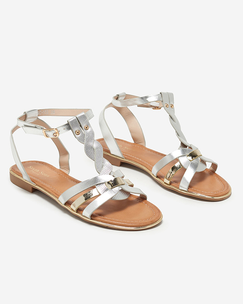 OUTLET Sandale plate dama argintiu-aurie Fatop- Incaltaminte