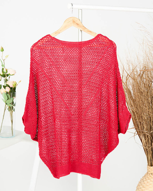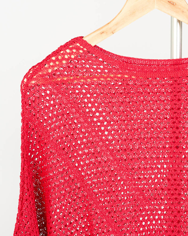 Pulover roșu transparent de damă cu umerii căzuți - Îmbrăcăminte