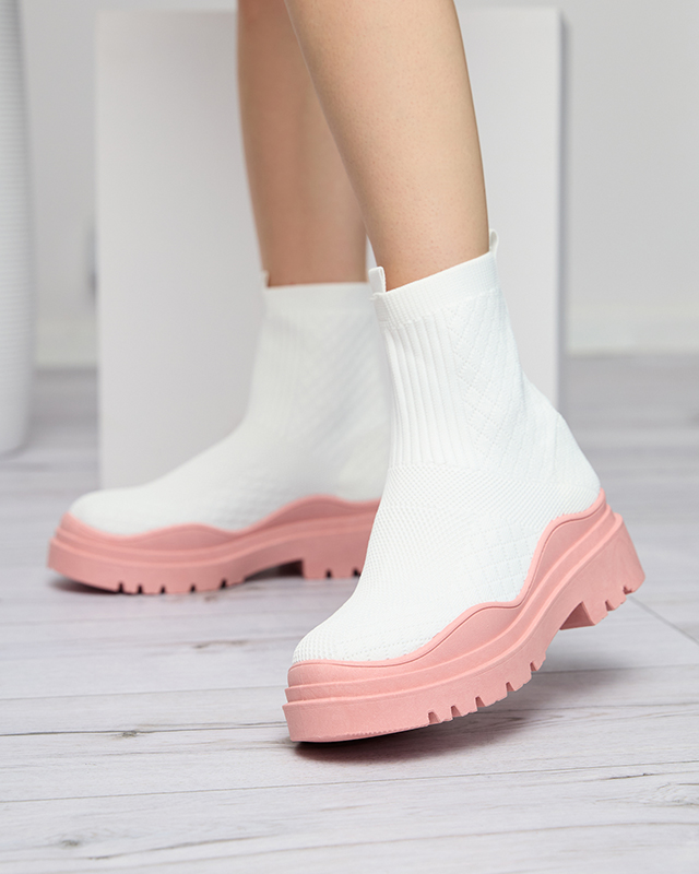 Cizme de damă albe și roz cu toc plat Seritis - Încălțăminte