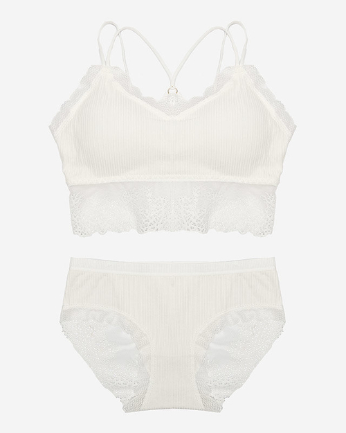 Set lenjerie intima dama cu dantela ecru - Lenjerie intima