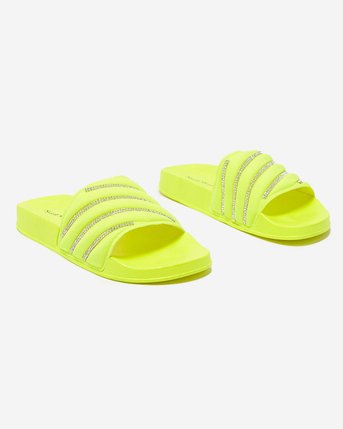 OUTLET Papuci de dama galben neon cu zirconiu cubic Erikis - Incaltaminte