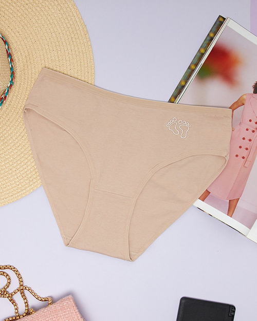 Chiloți de damă bej din bumbac cu picioare brodate - Lenjerie intimă
