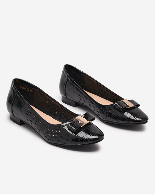 OUTLET Balerini negri ajurati de dama cu fundita Rumac - Pantofi