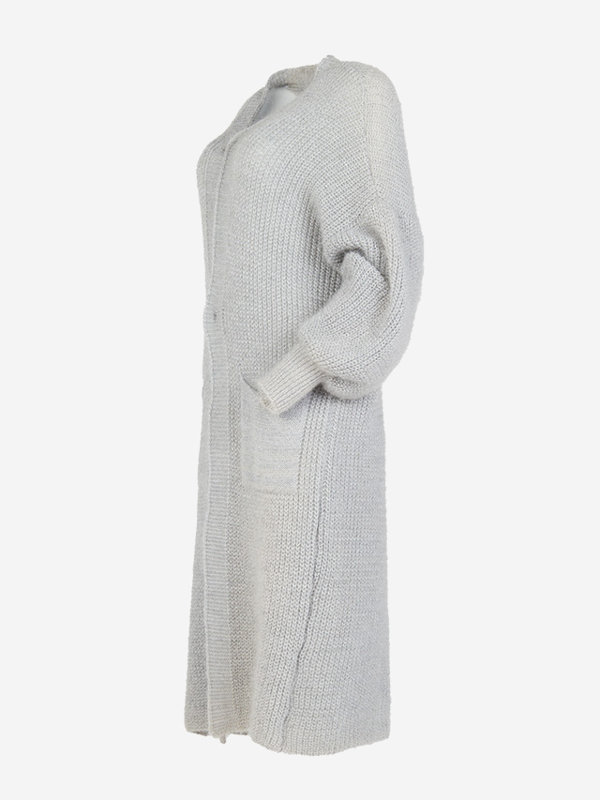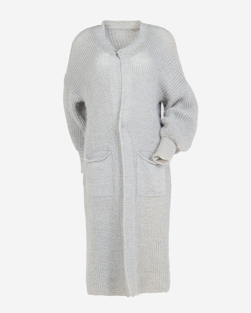 Pulover cardigan lung moale, gri deschis, pentru femei - Îmbrăcăminte