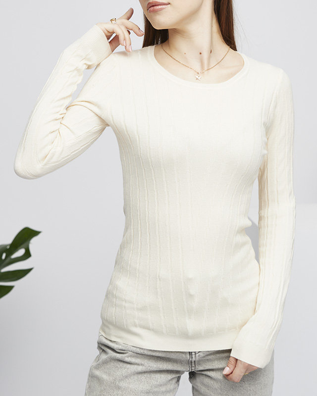 Pulover de damă bej cu gât rotund - Îmbrăcăminte