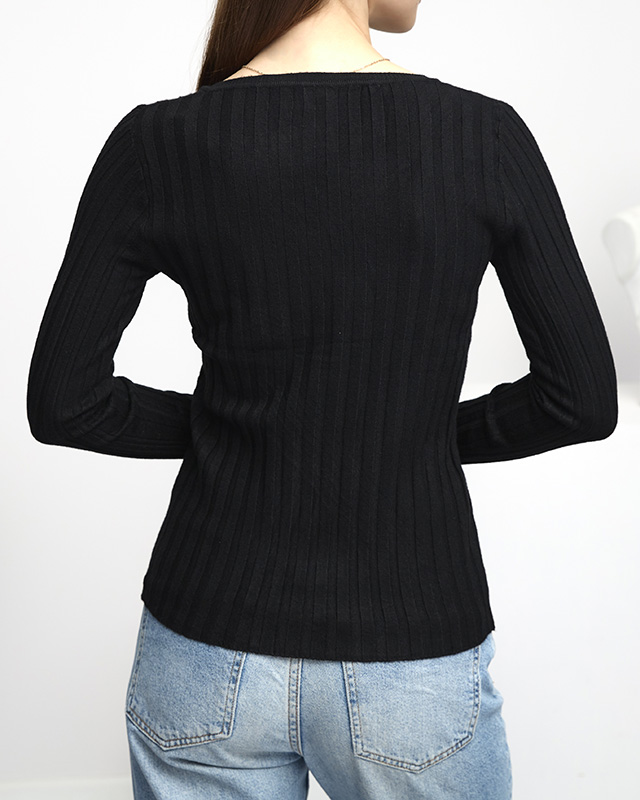 Pulover cu nervuri negre dama - Imbracaminte