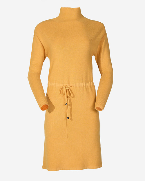 Rochie pulover de damă galbenă cu gât - Îmbrăcăminte