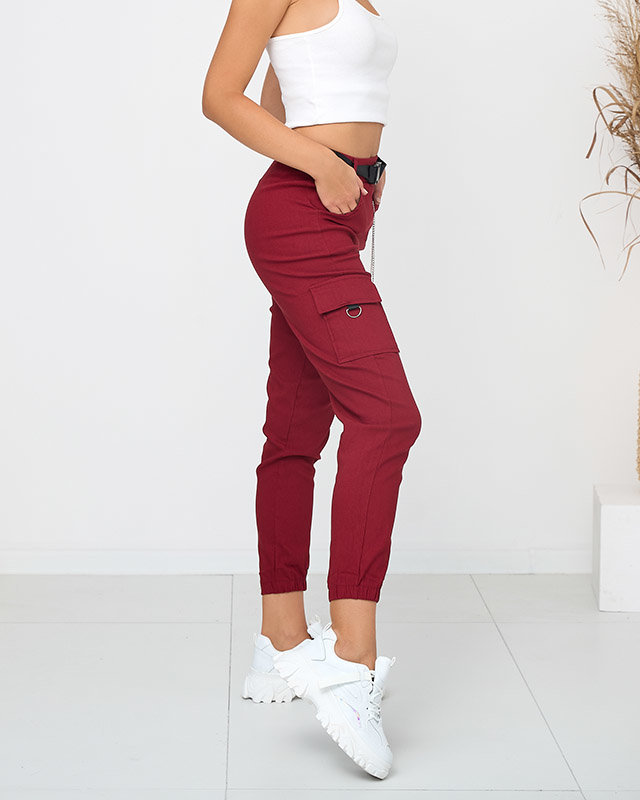 Pantaloni cargo izolați Bordeaux cu buzunare - Îmbrăcăminte