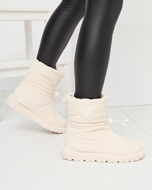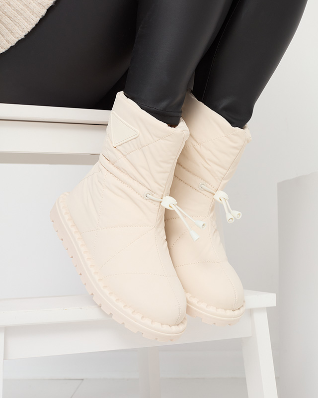 Cizme de zăpadă matlasate crem pentru femei pe o talpă plată Ferri - Încălțăminte