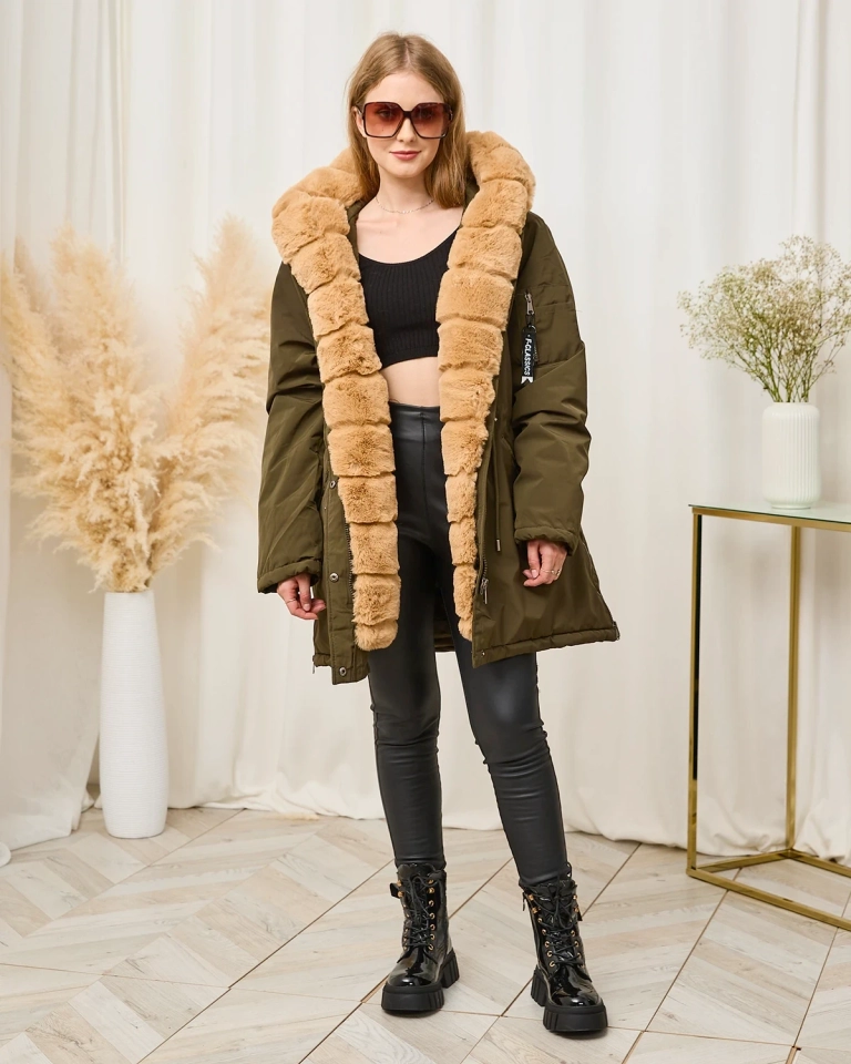 Jachetă de iarnă verde de damă PLUS SIZE - Îmbrăcăminte