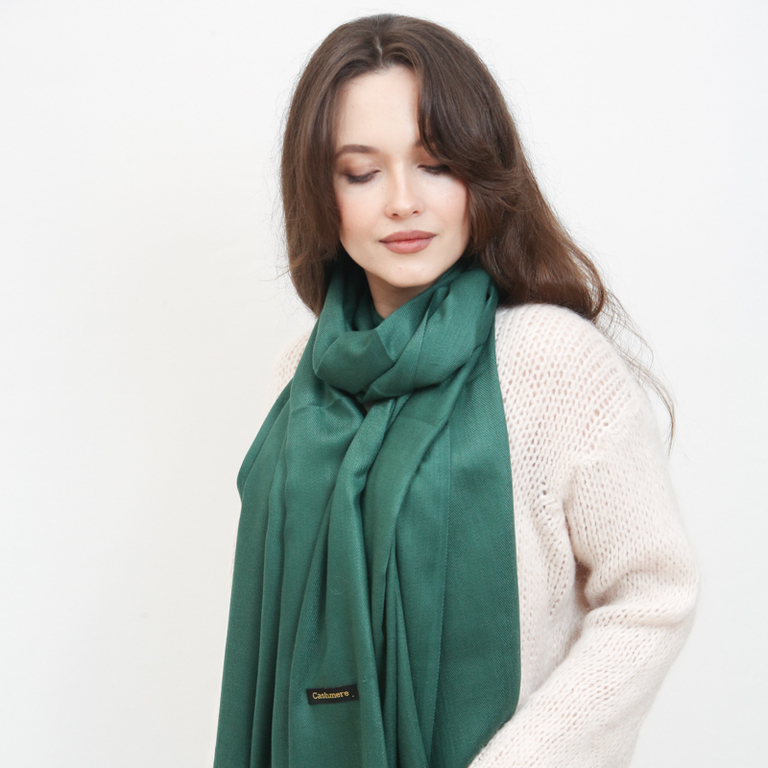 Eșarfă mare de damă verde închis cu ciucuri - Accesorii