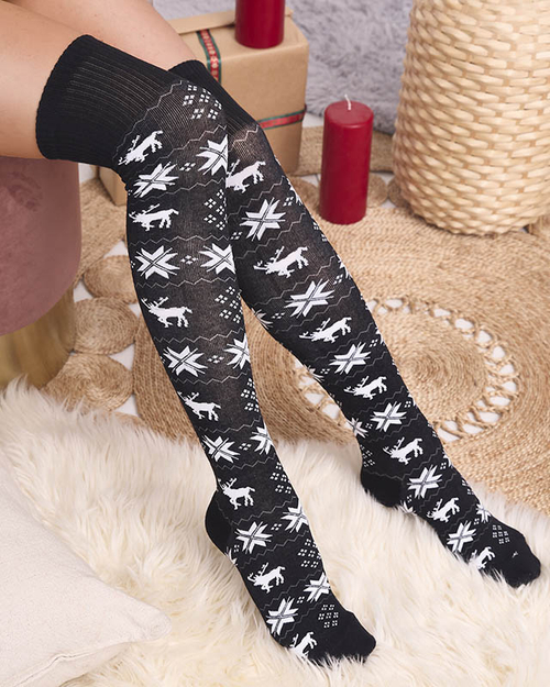 Șosete peste genunchi de Crăciun pentru femei, negre- Lenjerie intimă