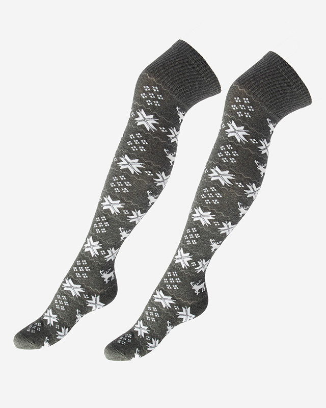 Șosete peste genunchi de Crăciun pentru femei, gri închis- Lenjerie intimă