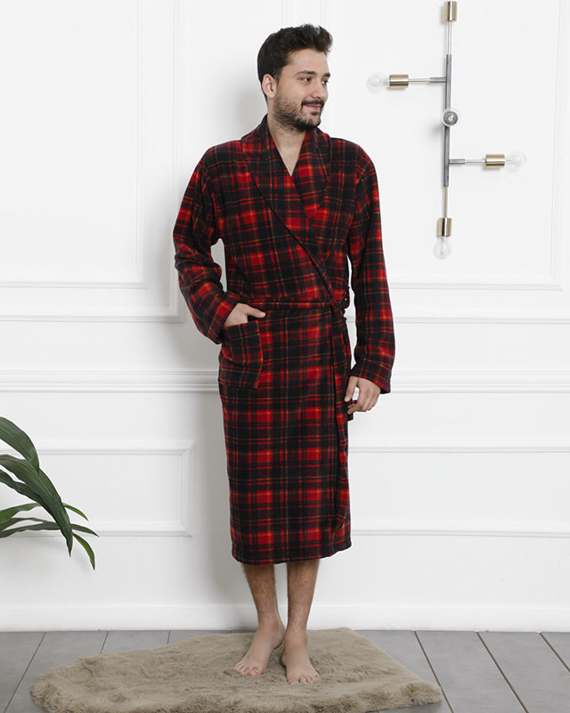 Halat de baie bărbătesc în carouri roșu și negru - Îmbrăcăminte