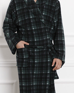 Halat de baie în carouri pentru bărbați verde închis - Îmbrăcăminte
