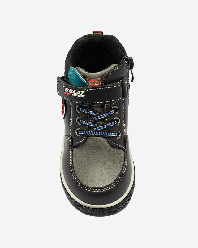 • Cizme elegante pentru băieți cu talpă plată, cu fermoar și închidere cu velcro, confecționate din piele ecologică. Mijlocul încălțămintei este căptușit cu țesătură. Perfect pentru toamnă! CIZME DE IARNĂ NEGRE CIZME PENTRU COPII CIZME WIASIO