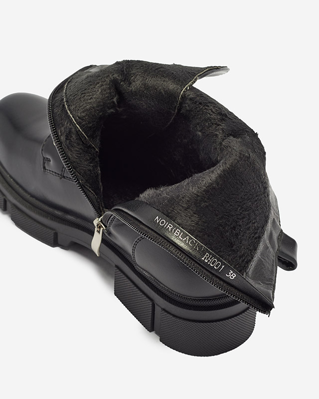 - Cizme bagger elegante din piele ecologică, cu șiret și fermoar. Modelul este decorat cu cristale și pietre, are talpă din cauciuc și încălzire sub formă de blană. CIZME DE IARNĂ IZOLATE NEGRE CIZME BAGER PENTRU FEMEI TOBRISSA