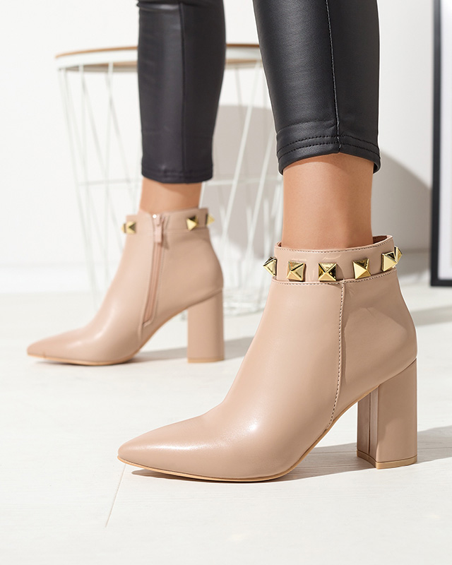 Cizme de damă bej decorate cu cuișoare Sertika - Încălțăminte