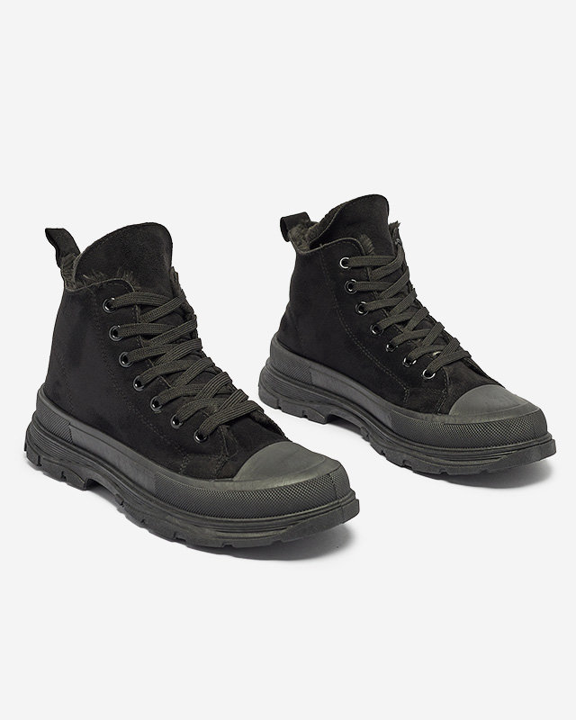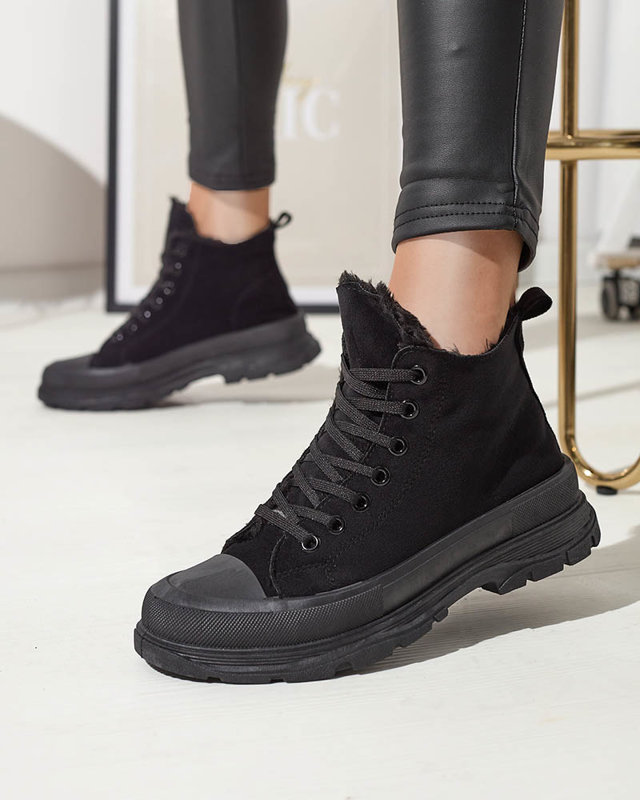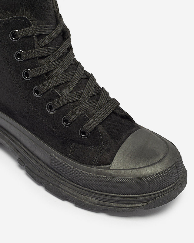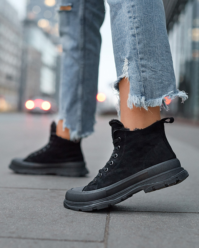 - Pantofi sport a'la înalte pentru femei, unici. Partea superioară cu șireturi este confecționată din piele ecologică de căprioară, iar partea de mijloc este izolată cu blană moale, moale. Confecționați solid și foarte confortabili datorită tălpii din cauci