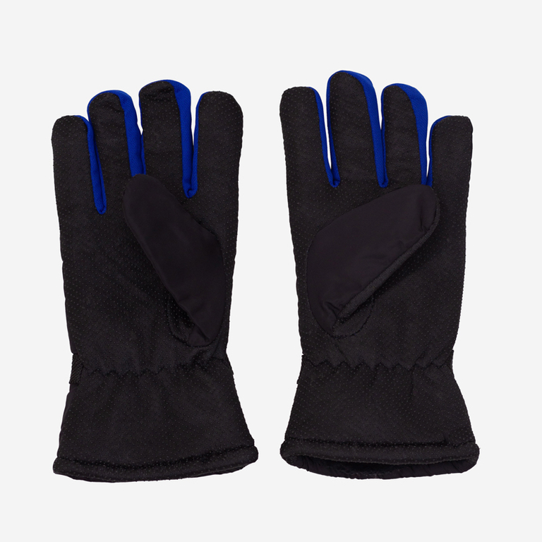 Mănuși izolate negre pentru bărbați cu inscripții și inserții cobalt - Accesorii