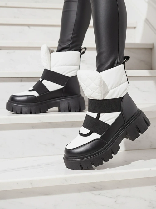 Cizme de zăpadă de damă cu talpă plată, în alb și negru Ferory- Footwear