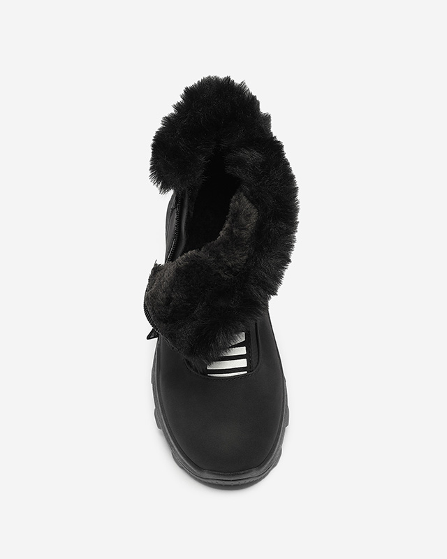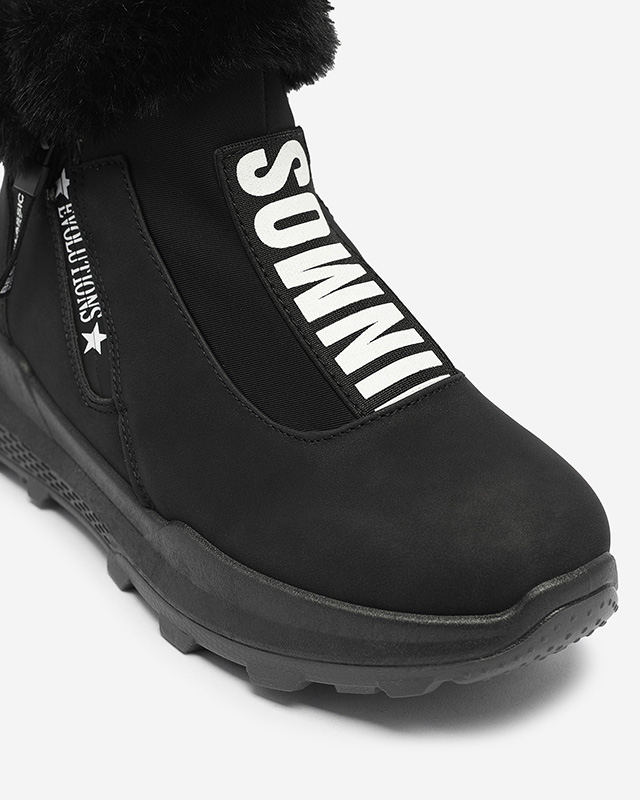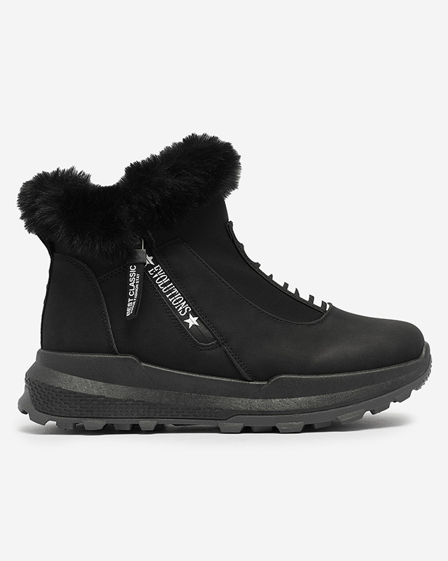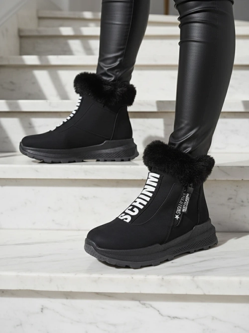 - Botine de damă confecționate din piele ecologică, interiorul este căptușit cu blană moale. În partea din față a feței este o inserție elastică cu inscripție decorativă, încălțămintea se închide cu fermoar. BOTINE DAMA NEGRE ÎNCĂLȚITE SCHERR
