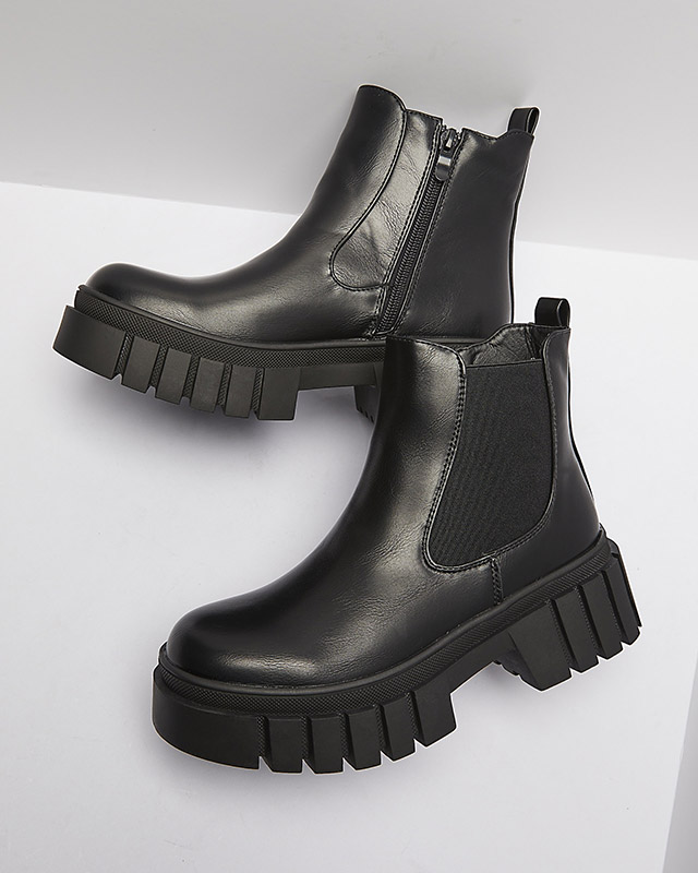 Cizme negre de damă cu talpă mai groasă Olilno- Footwear