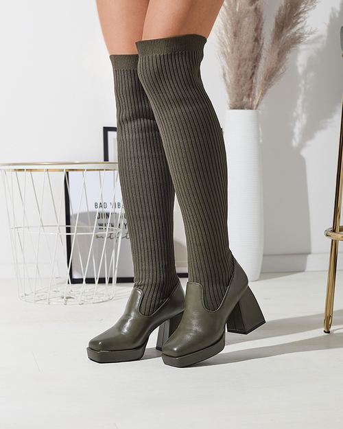 Cizme peste genunchi de damă verde închis Sarioga - Încălțăminte