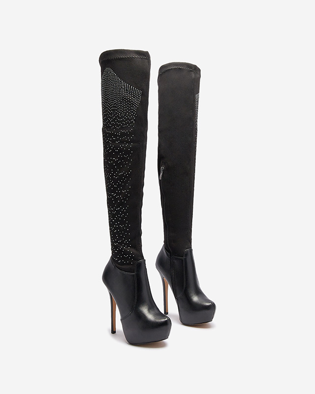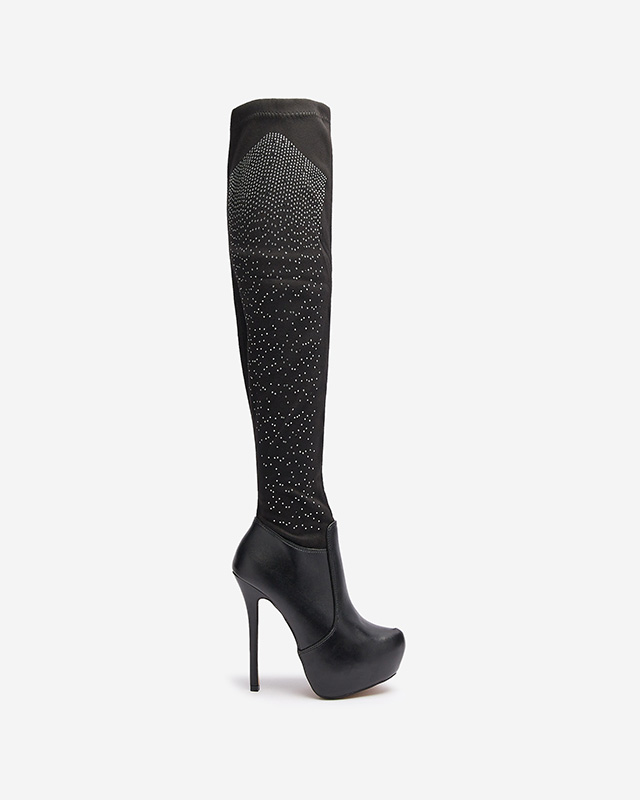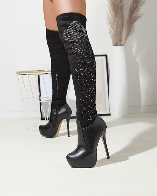 Cizme stiletto până la genunchi pentru femei, negre Agiocio- Footwear