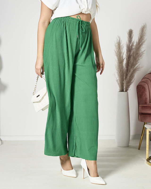 Pantaloni palazzo largi cu pliuri largi pentru femei, în verde - Îmbrăcăminte