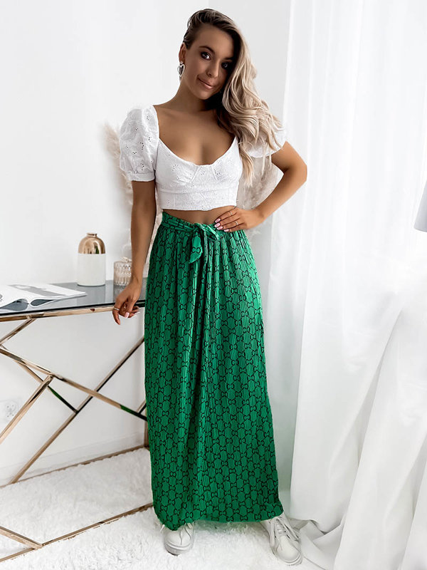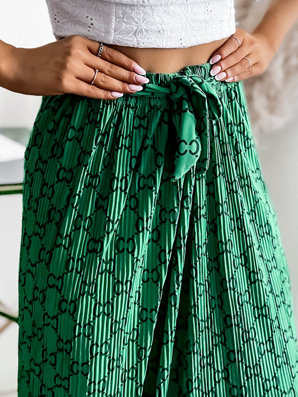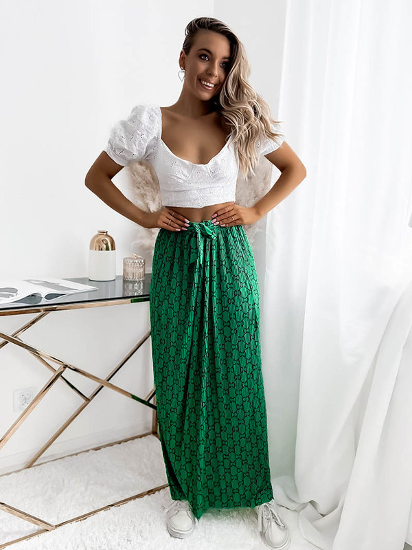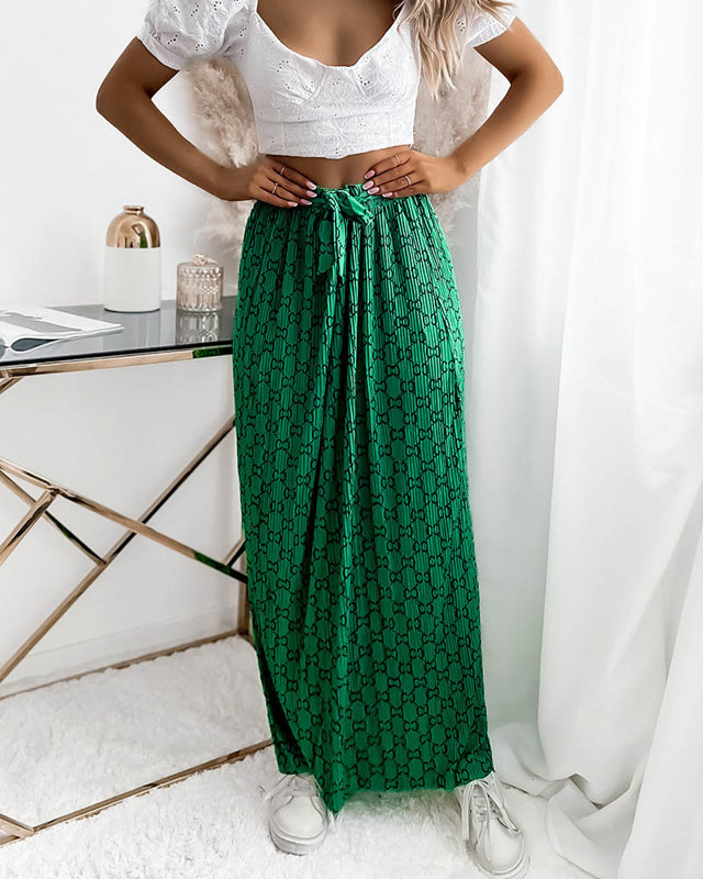 Fustă maxi plisată verde pentru femei cu modele - Îmbrăcăminte