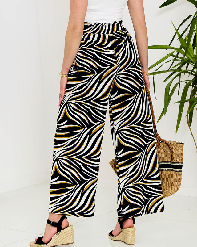 Pantaloni palazzo pentru femei cu model, negri- Îmbrăcăminte