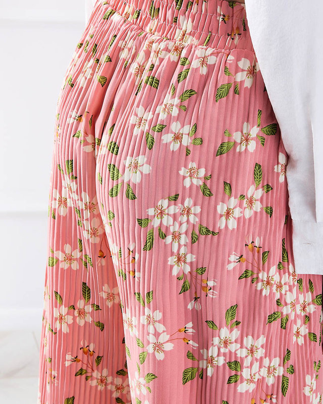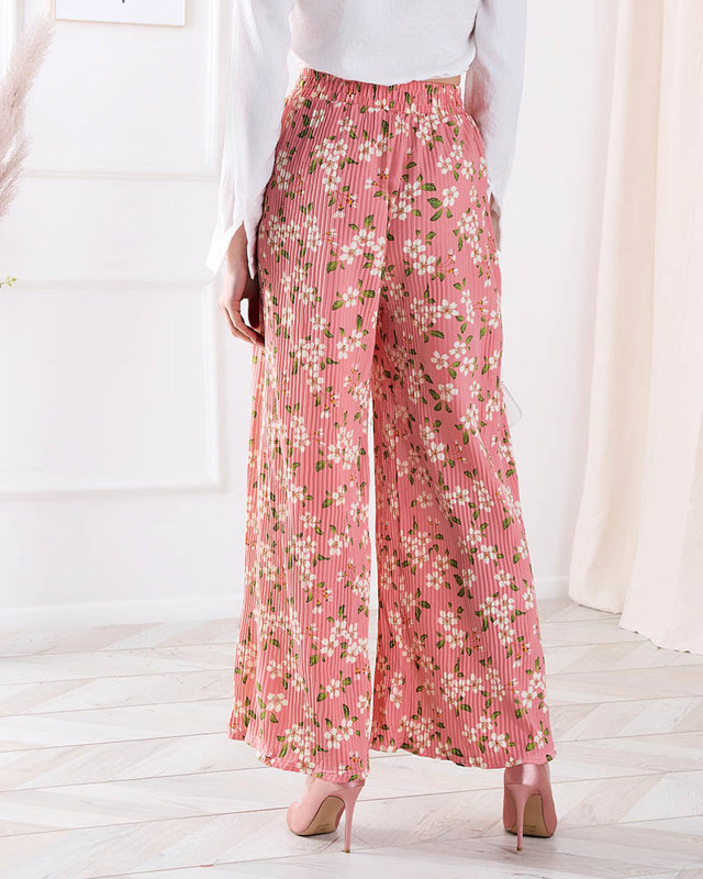 Pantaloni din țesătură florală roz pentru femei - Îmbrăcăminte