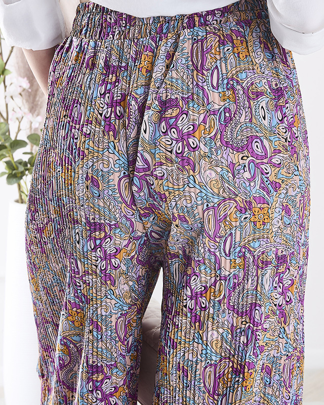 Pantaloni cu model cu picioare largi pentru femei în mov- Îmbrăcăminte