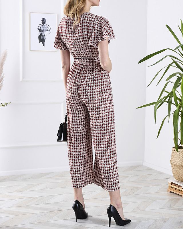 Salopetă lungă pentru femei cu model, cu legătură în roșu- Îmbrăcăminte