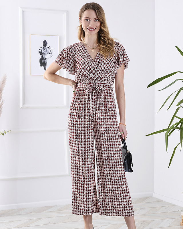 - Salopetă pentru femei cu model, cu mâneci scurte și decolteu plic. Modelul are picioare largi, lungi, o bandă elastică și o legătură în talie. O alegere ideală pentru cele care apreciază confortul. NOTĂ: Precizia măsurătorilor (+/-) 1 cm.