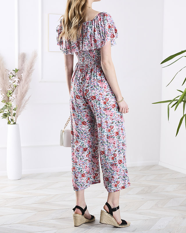 Salopetă lungă pentru femei cu model floral alb și roz - Îmbrăcăminte